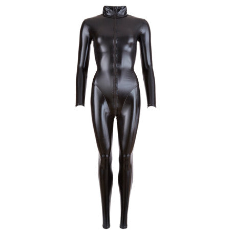 Per notti selvagge (di festa)! Tuta nobile e lucida con piccolo collare stand-up e cerniera frontale a 2 vie fino al fondo. Piacevolmente elastico e sicuro. 92% poliestere, 8% elastan.